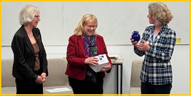 At the end of the event, the Ambassador was presented (above) with a small vase of Bristol Glass by Ann Kennard of Bristol-Hannover Council and Angela Greenwood of Bristol Anglo-German Society as a memento of her visit to the city. The Ambassador thanked the organisers and promised to return to Bristol in 2027 for the celebrations of the 80th Anniversary.